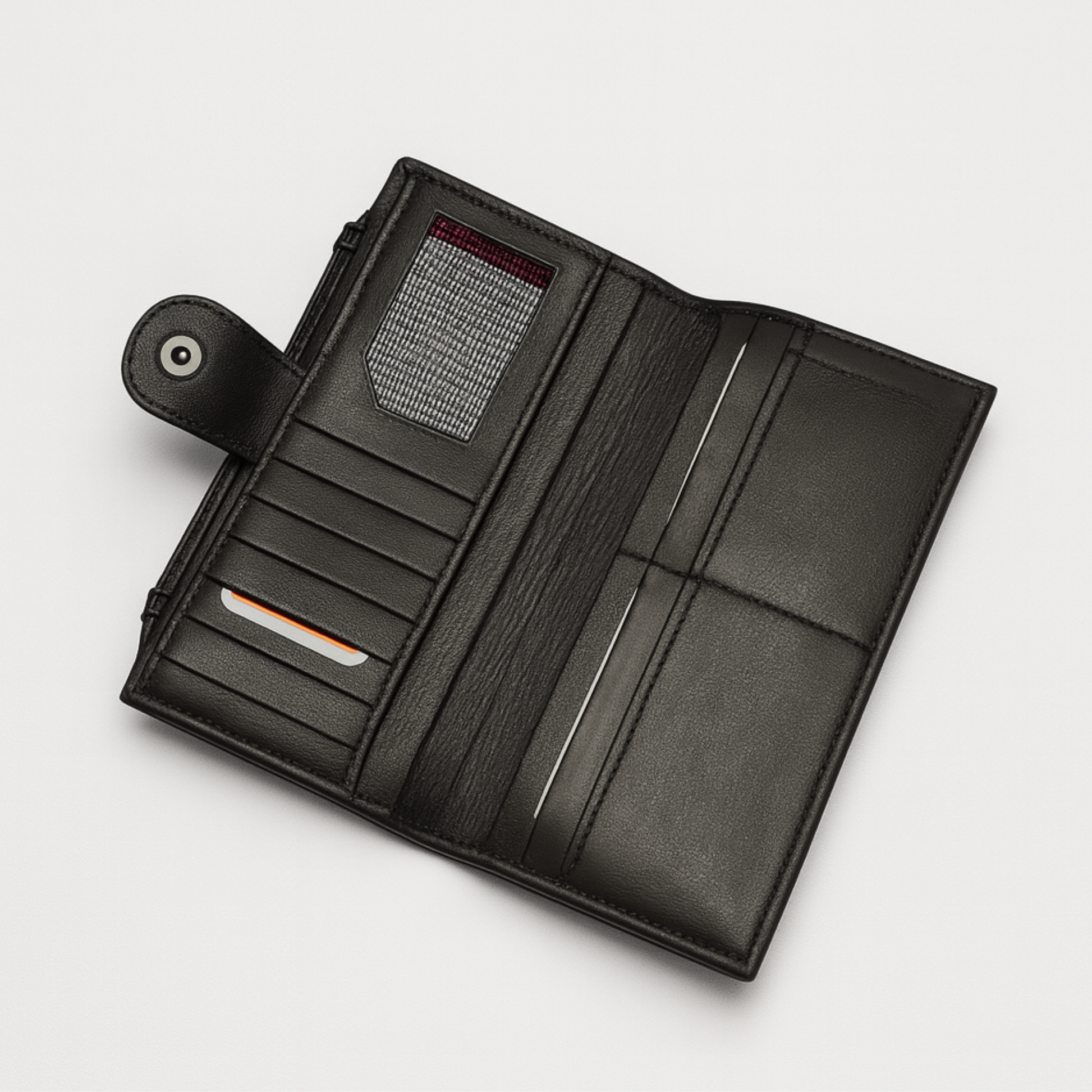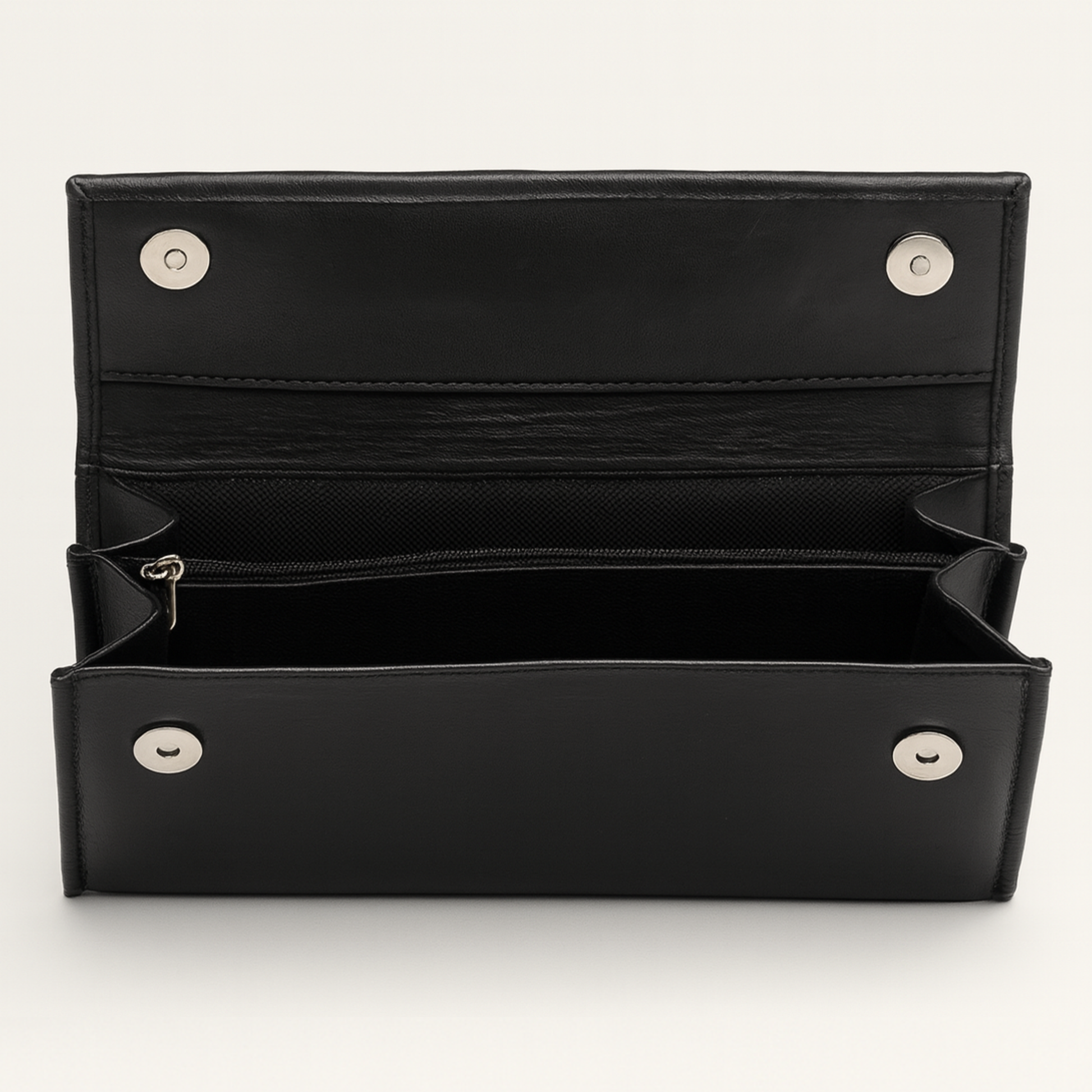 - Full Organizer: The inside works like a wallet, with lots of card slots, long pockets, and a secure zipper section.