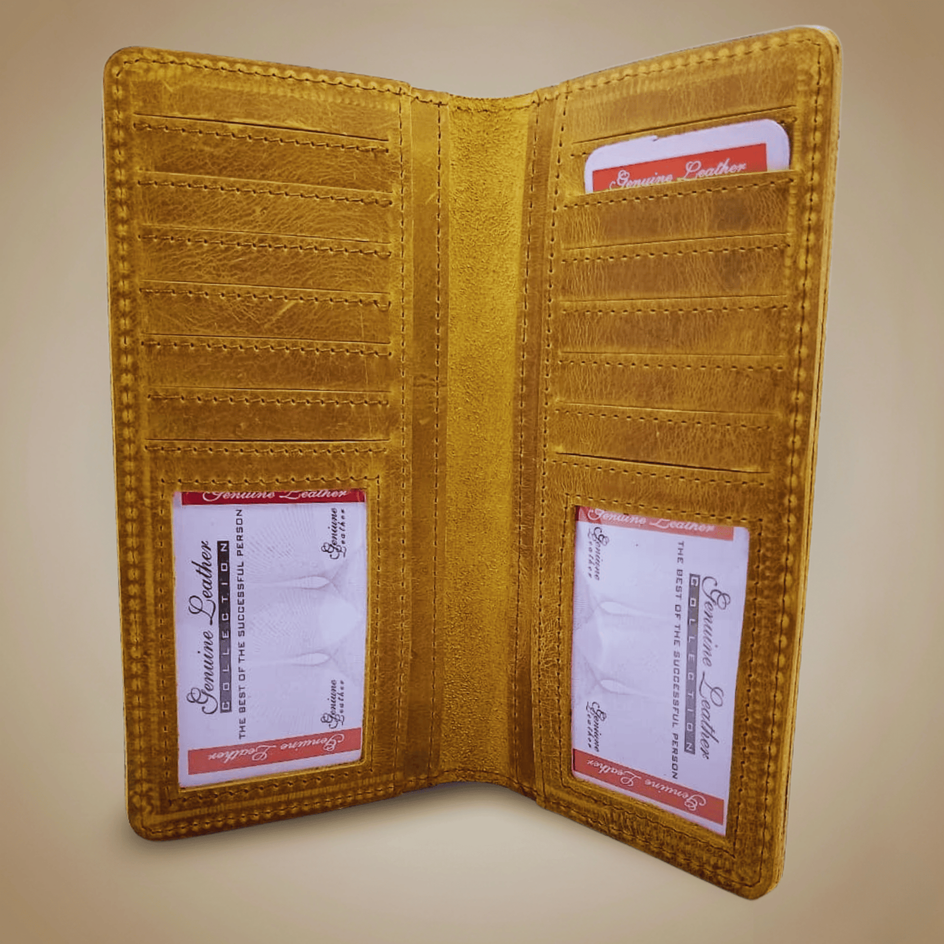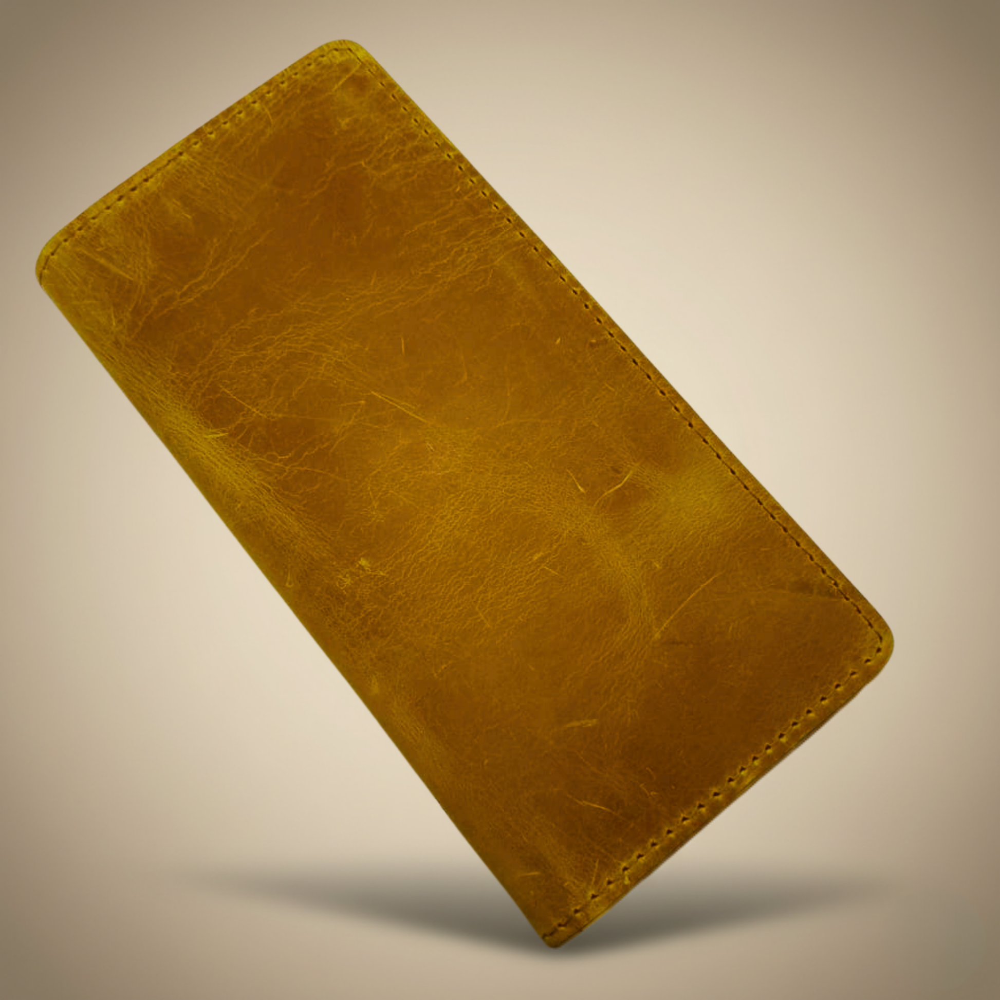Vintage Hand Made Brown Crazy Horse Leather Long Wallet